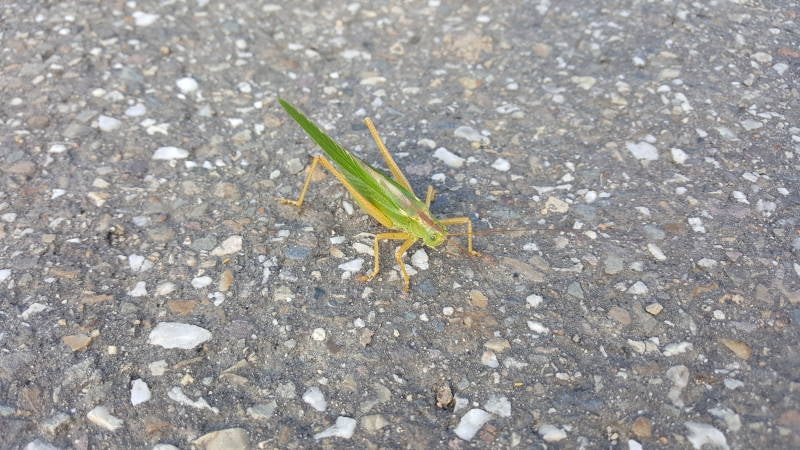 Een krekel heeft altijd lange voelsprieten, is niet groen en maakt geluid door met zijn vleugels langs elkaar te strijken