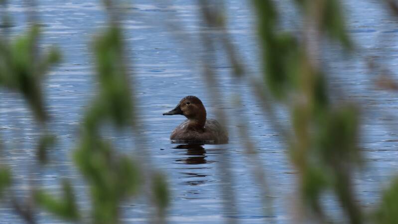 Mannetje heeft roodbruine kop met fel rode ogen, een zwarte borst en stuit en verder een licht grijs verenkleed. Het vrouwtje is minder opvallend, met een lichtbruine kop en stuit, en op de romp een licht grijsbruin verenkleed.