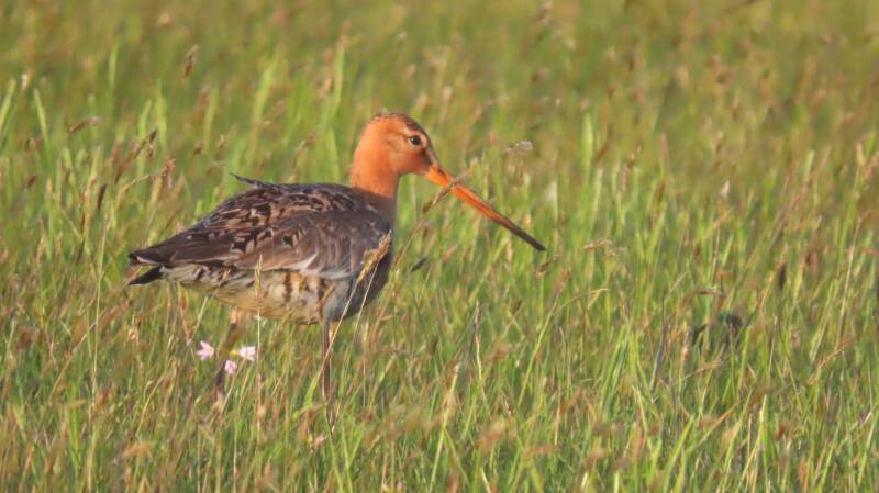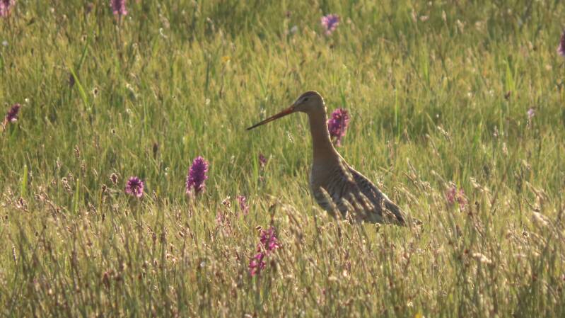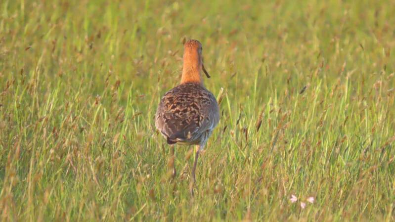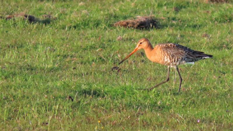 De grutto is een oer-Hollandse weidevogel. Zo is hij de ambassadeur van agrarisch land waar productie en natuur in balans zijn. Nergens in Europa broeden zoveel grutto’s als in Nederland. In 2016 is de grutto uitgekozen door het Nederlandse publiek tot nationale vogel. Grote, slanke steltloper met lange poten. Rechte snavel. In vlucht brede, witte vleugelstreep, witte staartbasis (vierkant) met zwarte eindband. Poten steken uit. Buik met donkere banden. Mannetje ruit in prachtkleed naar een meer steenrode kleur dan vrouwtje. In de winter bruingrijze borst en bovendelen.
